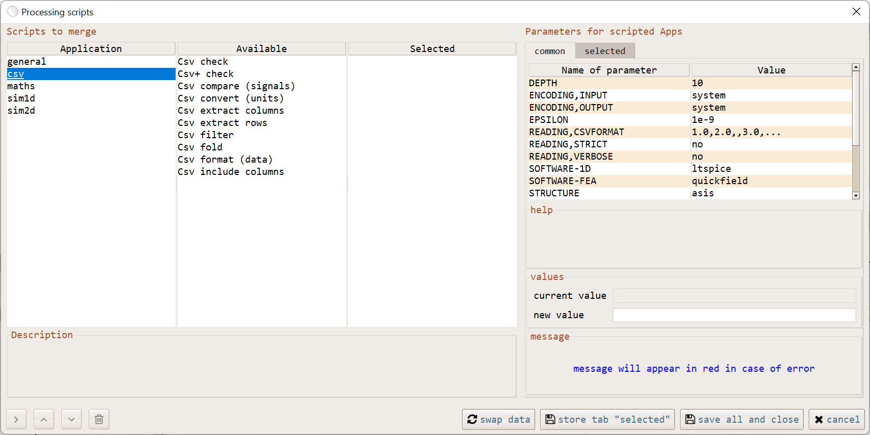 pop-up scripts selection