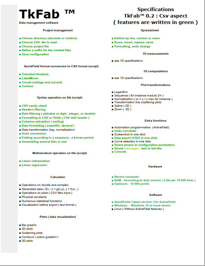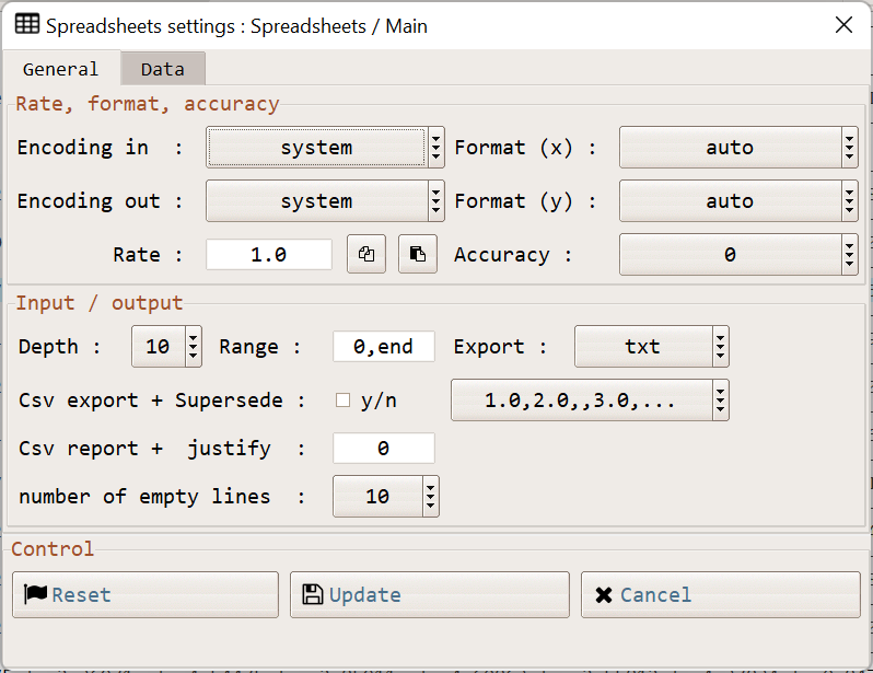 access to main parameters